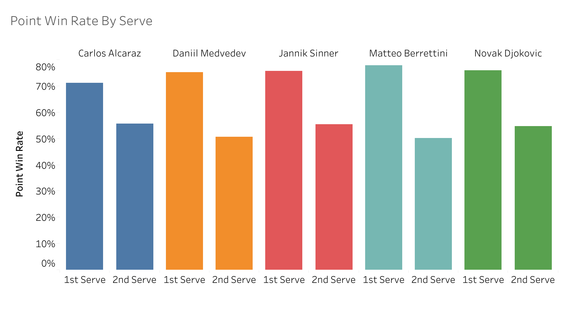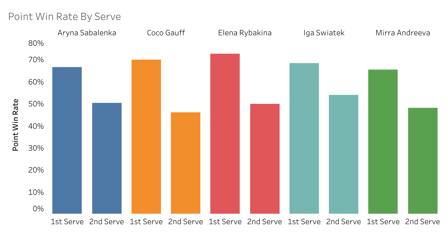 - There are some strong servers in the Women’s game however - notably Elena Rybakina with a 17% ace rate on the first serve.